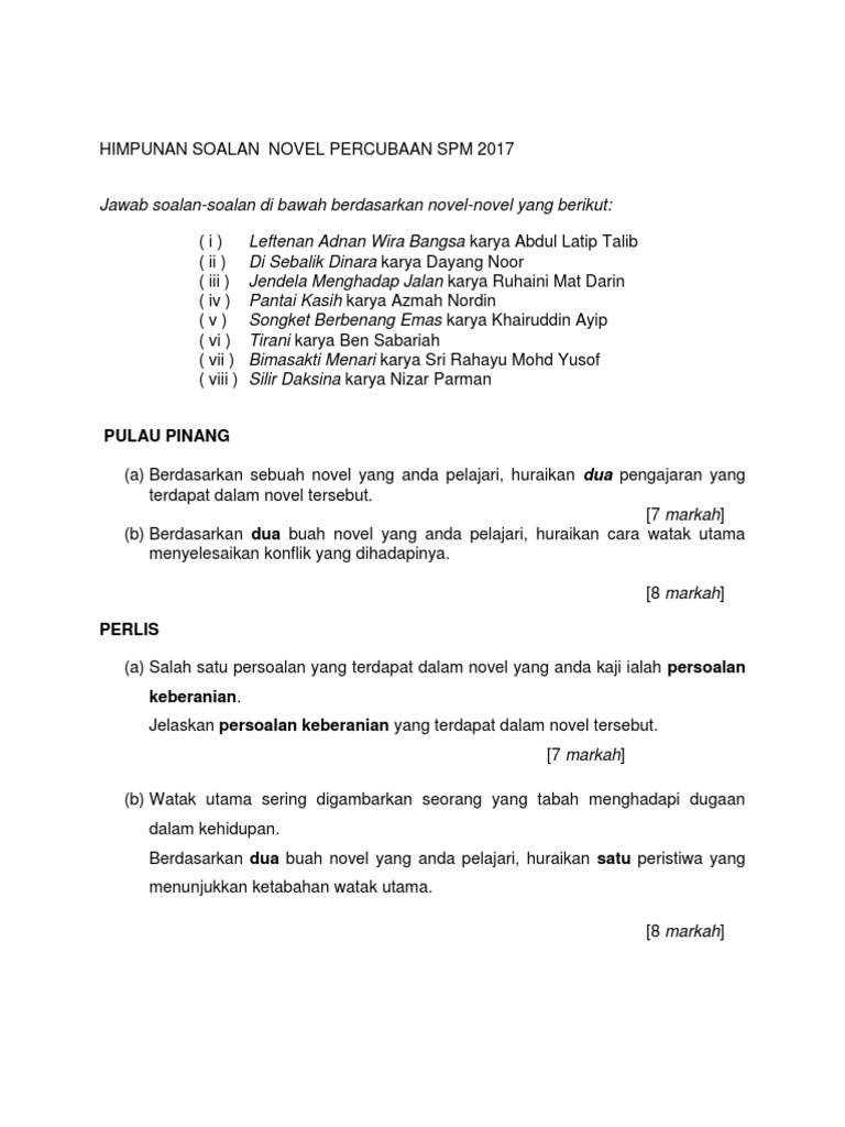 Himpunan Soalan Novel Percubaan Spm 2017 Pdf